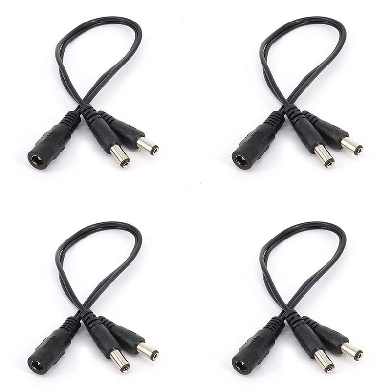 LOYELEY 4pcs DC Power Cable 2 Splitter Cable 5.5mm Outer Diameter 2.1mm Inner Diameter 1 Female to 2 Male Splitter Cable for Security Camera LED Tape Light CCTV Camera Length 20cm Black