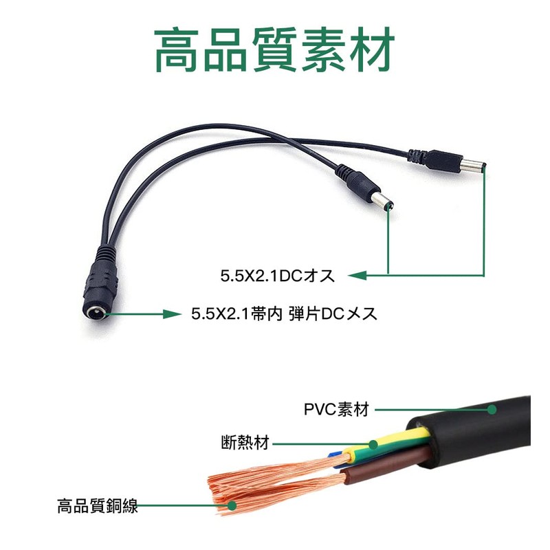 - There are two DC brunches to adjust the wiring freely. One power adapter can power two devices simultaneously