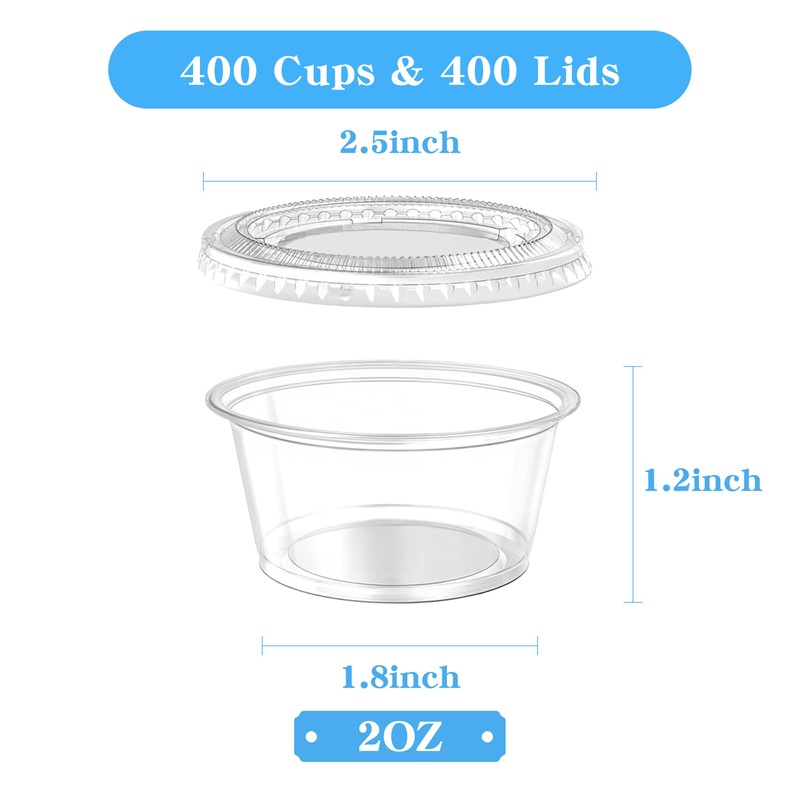 - Bulk Value Pack: Includes 400 sets of 2 oz portion cups with matching lids—plenty to cover food prep, sampling, or entertaining needs at home, in a restaurant, or during catering gigs.