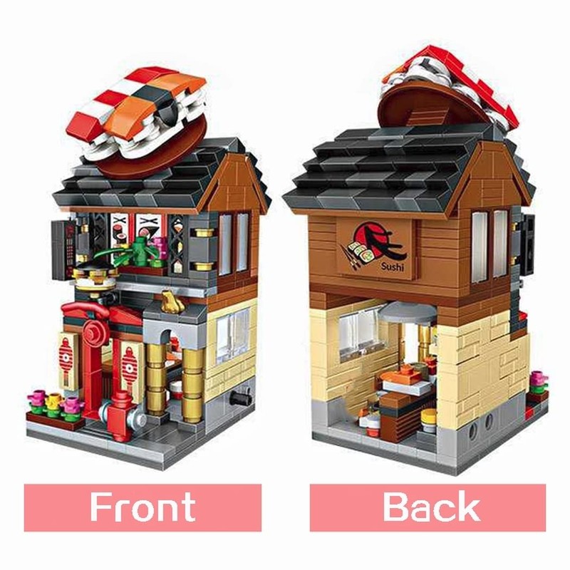 • Sushi Restaurant Building Mini Blocks Set Includes detailed instructions, tool for assembling and disassembling the parts, and stickers to decorate the final model.