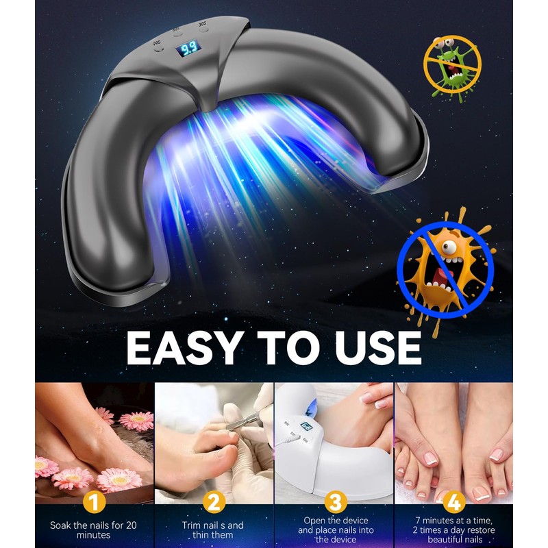 LOZLTX 8.0 Nail Pil Laser Device 21 Day Fast Acting Device for Multiple Toenails and Fingernails Industry No. 1 Laser 365 nm Infrared Light 405 nm Blue