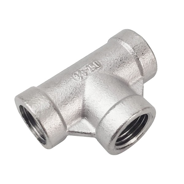 LOZOME 1-1/2" Stainless Steel Tee Female NPT Threaded T Shaped 3 Way Cast Pipe Fitting SS304