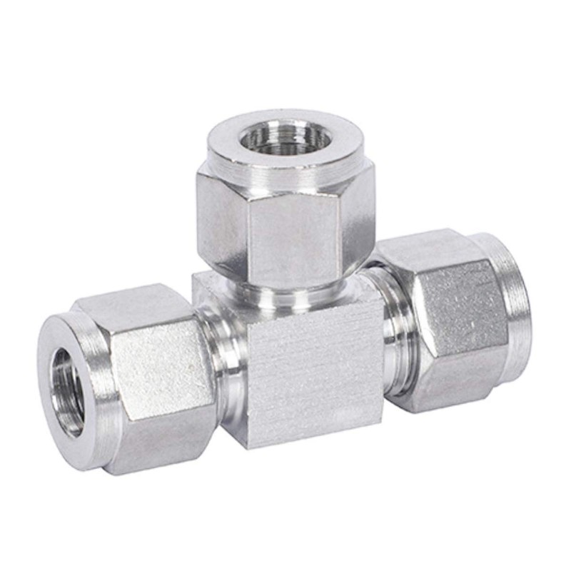 LOZOME 304 Stainless Steel 3 Way Compression Fitting, Tee, Adapter with Twin Ferrules,3/8" Tube OD