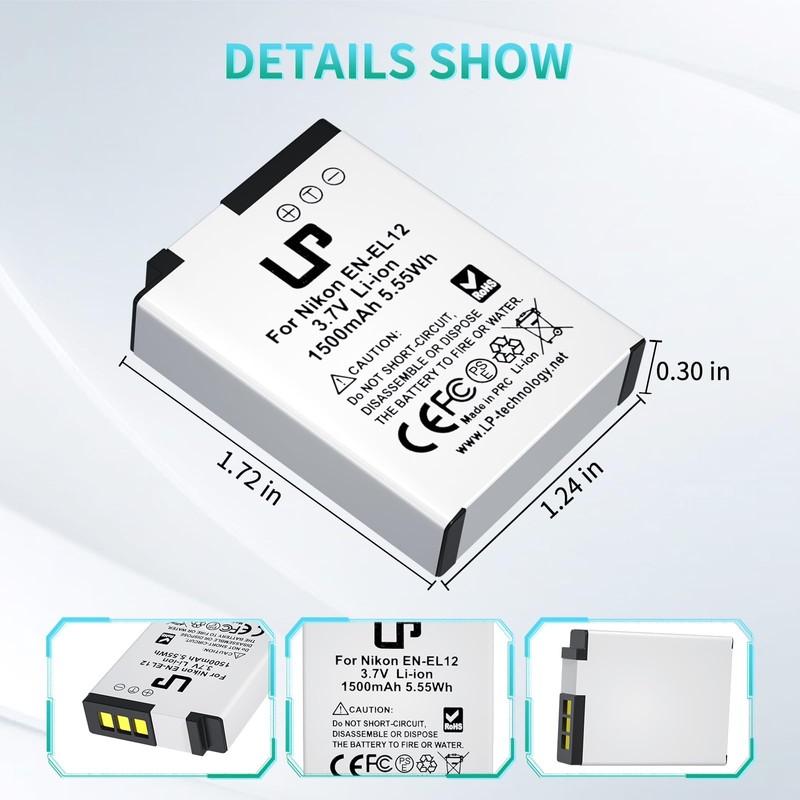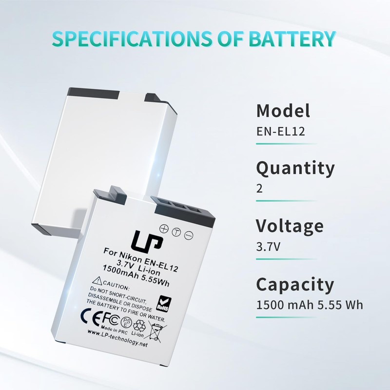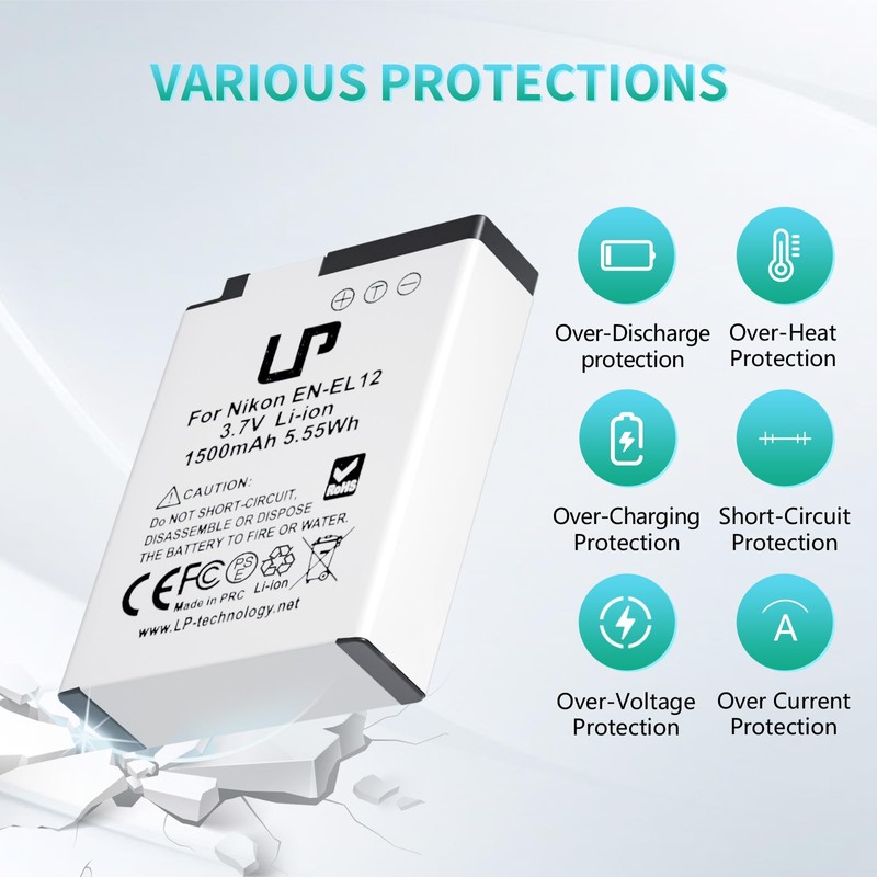 - 100% Safety: LP EN-EL12 replacement batteries have overcharge protection, short circuit protection, high temperature protection and surge protection with CE, FCC, RoHS Certifications, tested by manufacturer to match OEM products.