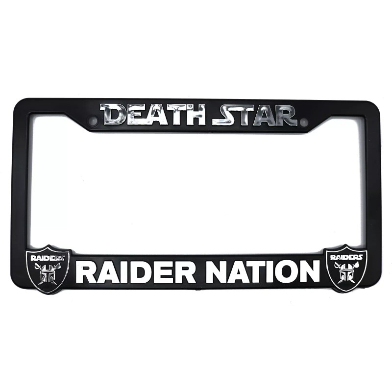 Show your allegiance to the Raider Nation with the LP Frameworks Deathstar for Raider Nation 3D Raised License Plate Frame! This bold and unique frame combines two legendary fandoms, featuring striking 3D raised lettering that boldly proclaims your loyalty to the Raider Nation while paying homage to the iconic Death Star. Crafted from high-quality, durable materials, this frame is designed to withstand the elements, ensuring it maintains its vibrant appearance and structural integrity for years to come. With a universal fit for standard North American license plates (12.25 x 6.25 inches), it easily attaches to cars, trucks, and SUVs across the U.S., Canada, and Mexico. Installation is quick and hassle-free, allowing you to transform your vehicle’s look in just minutes. Whether you’re headed to a game, tailgating with friends, or simply expressing your passion in everyday life, this stylish frame is the perfect accessory for any Raider fan. It also makes an exceptional gift for fellow supporters of the silver and black. Elevate your ride and showcase your pride with the LP Frameworks Deathstar for Raider Nation 3D Raised License Plate Frame—order yours today and let your fandom shine on the road!