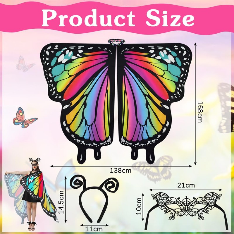 LPAMABA Women's Butterfly Costume Butterfly Wings Fancy Dress Costumes Butterfly Costume for Party Christmas Costume Cosplay Bring a Headband and Face Mask, as shown in the picture