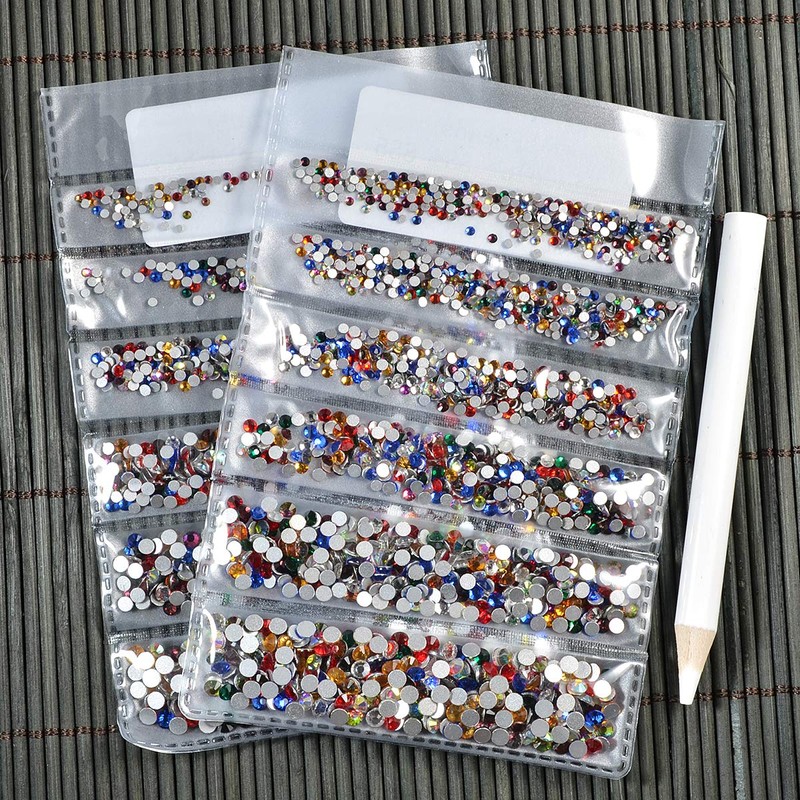 - 2019 PRODUCT UPGRADE: You will get additional 1440pcs ss10(2.8mm) Crystal Clear rhinestones. This Rhinestones set contains 3456pcs Mix Color rhinestones, 1440 pcs Crystal Clear rhinestones and picker Wax Pencil.