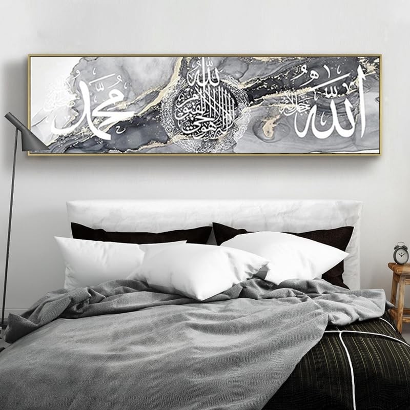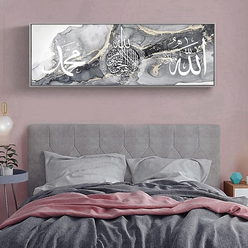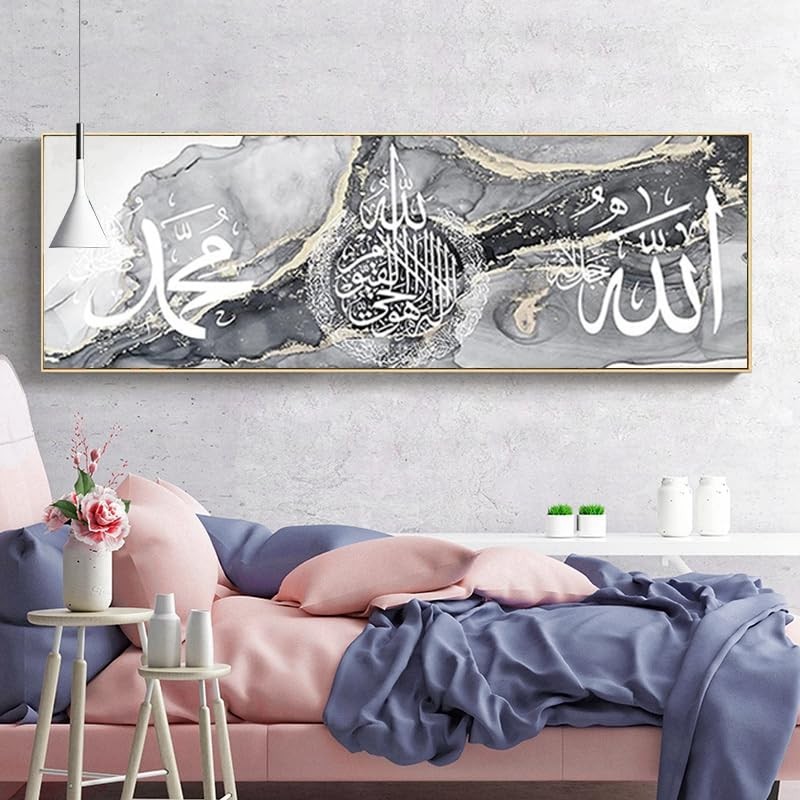 LPFNSF Islamic Decorative Poster, Arabic Calligraphy Marble Background Picture, Decorative Canvas Painting, Furniture Background Wall Printed Canvas Painting, Frameless (Style 7, 40x120cm*1)