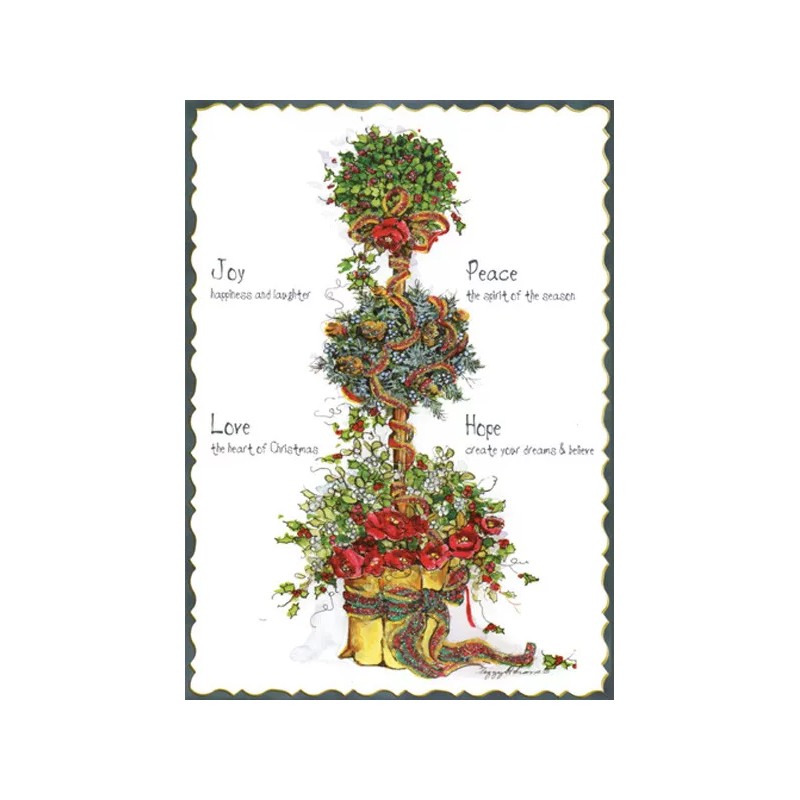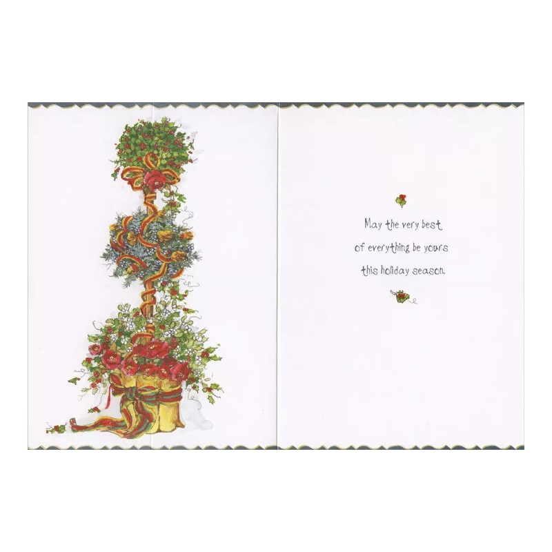 Flowers and Holly Topiary Tree : Peggy Abrams Pop Out 3-D Christmas Card