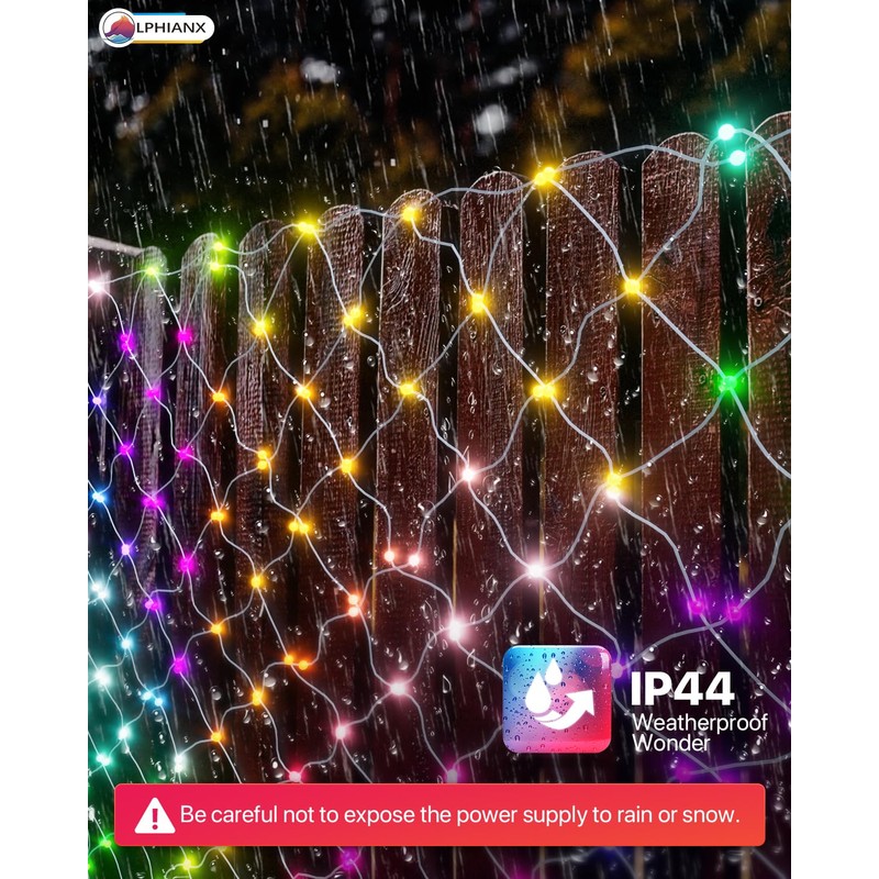 - [Outdoor Weatherproof]: This outdoor mesh light has an IP65 water resistance rating, and its cables are highly elastic, making it reliable for outdoor. So, no matter the weather, you can enjoy expressive outdoor lighting. (Note: The IP44 adapter should not be exposed in water or rain.)