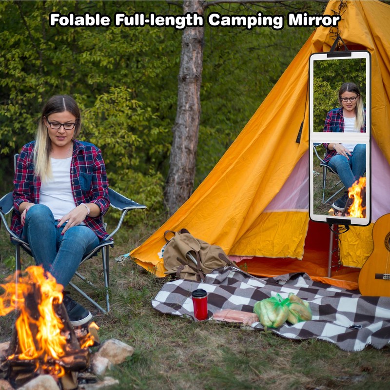 Space-Saving Hero Body Mirror: Fold it flat to tuck in the luggage or slide it in the car boot. Perfect for traveling, glam camping, or RV life.