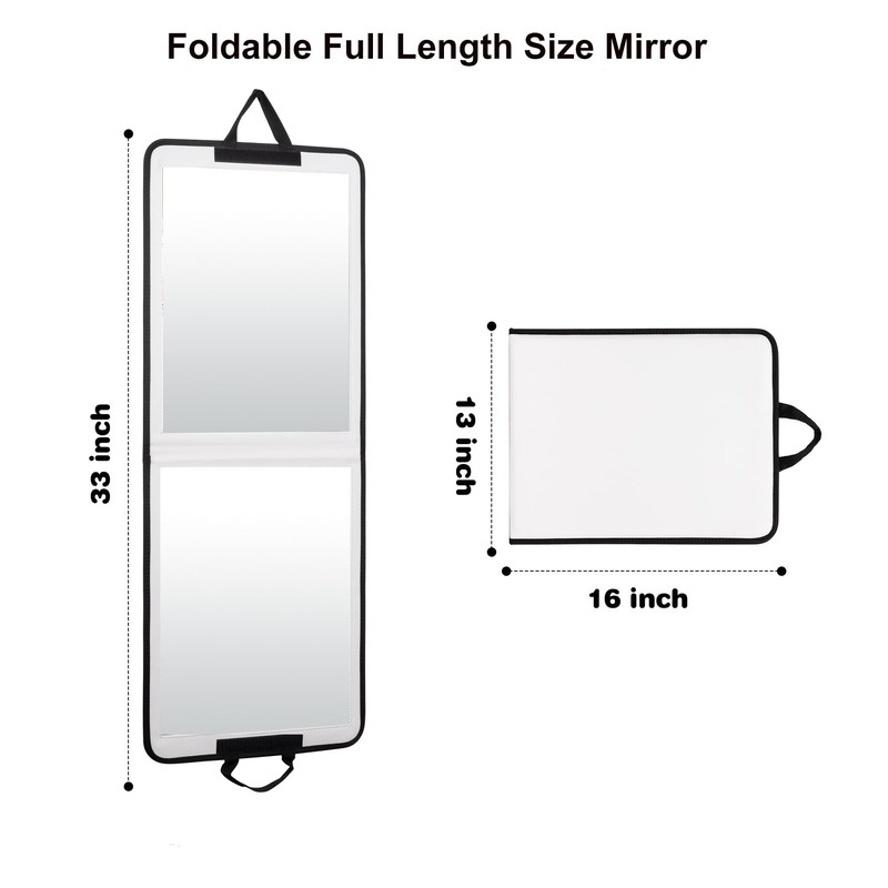 - 👜 Compact Travel Body Mirror - Unfold Size: 33" H x 13" W, and fold to half its size (16.5" H x 13") with strong straps, making it ideal for RVs, lockers, suitcases, or cramped closets. No more bulky body