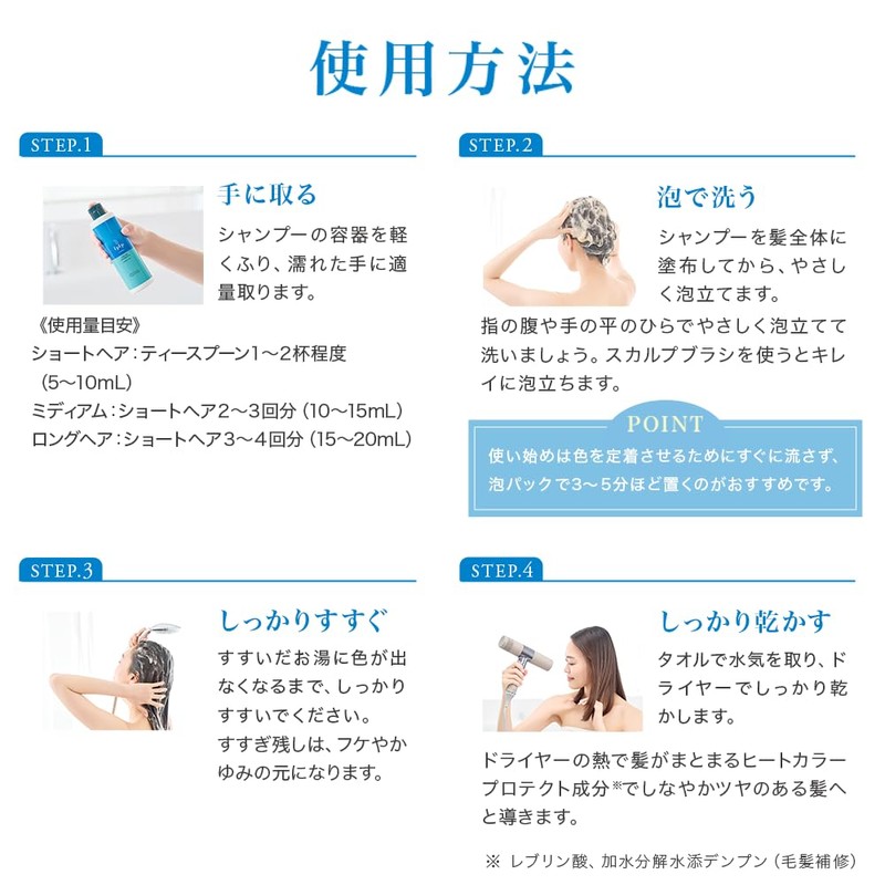 - (Colors naturally with each use) Easy to dye every day. Color shampoo that naturally conceals gray hair with every wash The smooth bubbles encapsulate each strand of hair and scalp while removing dirt from your hair and scalp, creating an uneven color on the surface of your hair from the roots* The three-dimensional color formula consisting of two different dyes in a balanced formula that adheres to the surface and inside of the hair for natural hair colors* ※ Color the hair surface