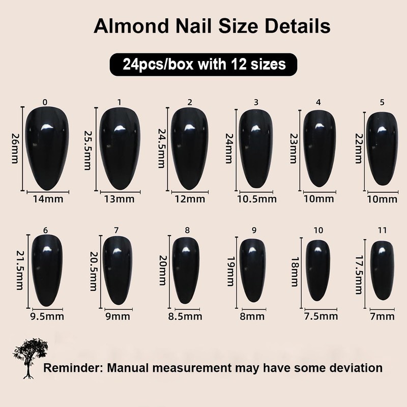 - Exquisite Design Press-On Nail Kit: You will get 24pcs of high-quality salon style almond press on nails with 10 different sizes, you can choose the most suitable false nail for yourself, it is easy to trim and file them to in any length and shape you like.