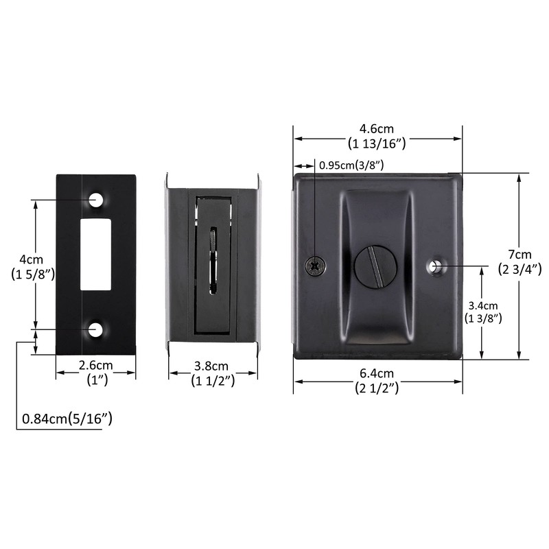 1 Privacy Sliding Door Lock + 1 Side Panel + 4 Screws + English Manual