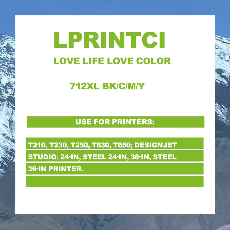 Lprintci 1X Yellow 1X Cyan 1XMagenta 1XCyan 1XBlack 712XL Ink Cartridges Replacement for HP 712XL Ink Cartridges Work for DesignJet T210, T230, T250, T630, T650. DesignJet Studio 24-in, Steel 24-in, 36-in, Steel 36-in Printer