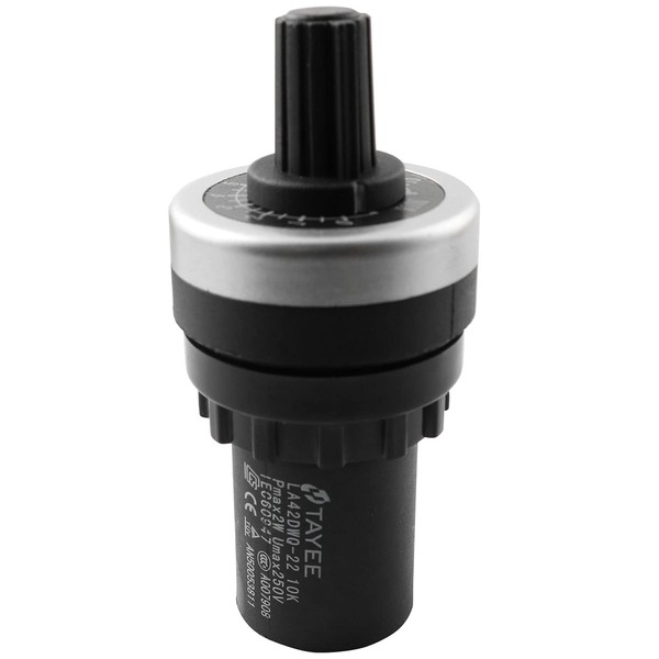 - Resistance value: 10k ohm. Resistance tolerance: +/- 10%. Mounting hole: 22mm (0.87in). Operating temperature: -20~+55 degrees Celsius. Protection level: IP65.