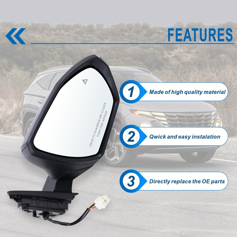 - 🔺Feature: Manual Folding 丨Power glass丨Heated丨Blind Spot丨 Turn signal