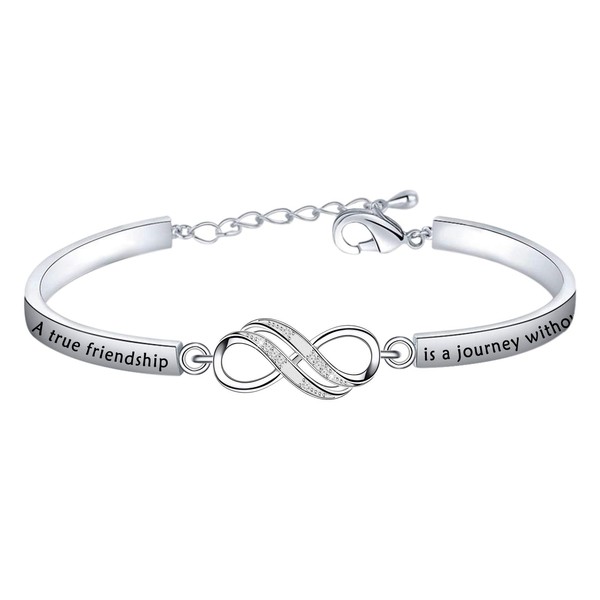LQRI Best Friend Infinity Bracelet Long Distance Friendship Gift A True Friendship Is a Journey Without An End Jewelry Sisters Bracelets BFF Gifts for Women Girls (true friendship-silver)