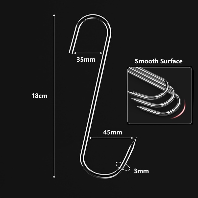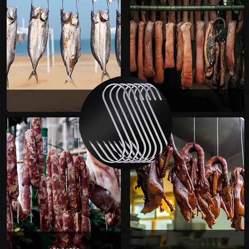 - Widely used: our meat hooks are available with pointed and blunt ends, S-hooks are very suitable for hanging smoked food, such as meat, fish, ham etc., can also be used for home, BBQ, garden, workshop etc.