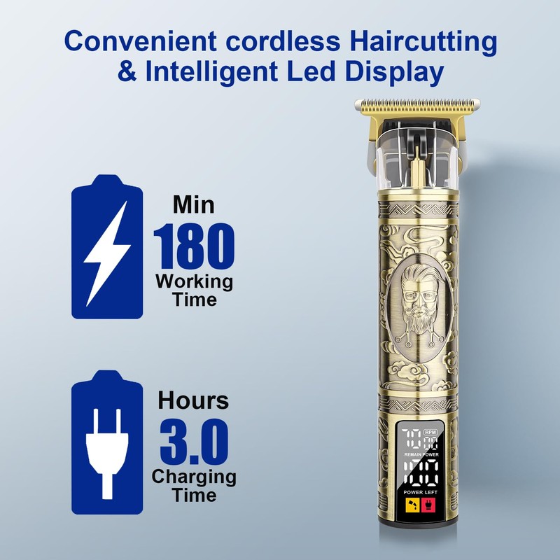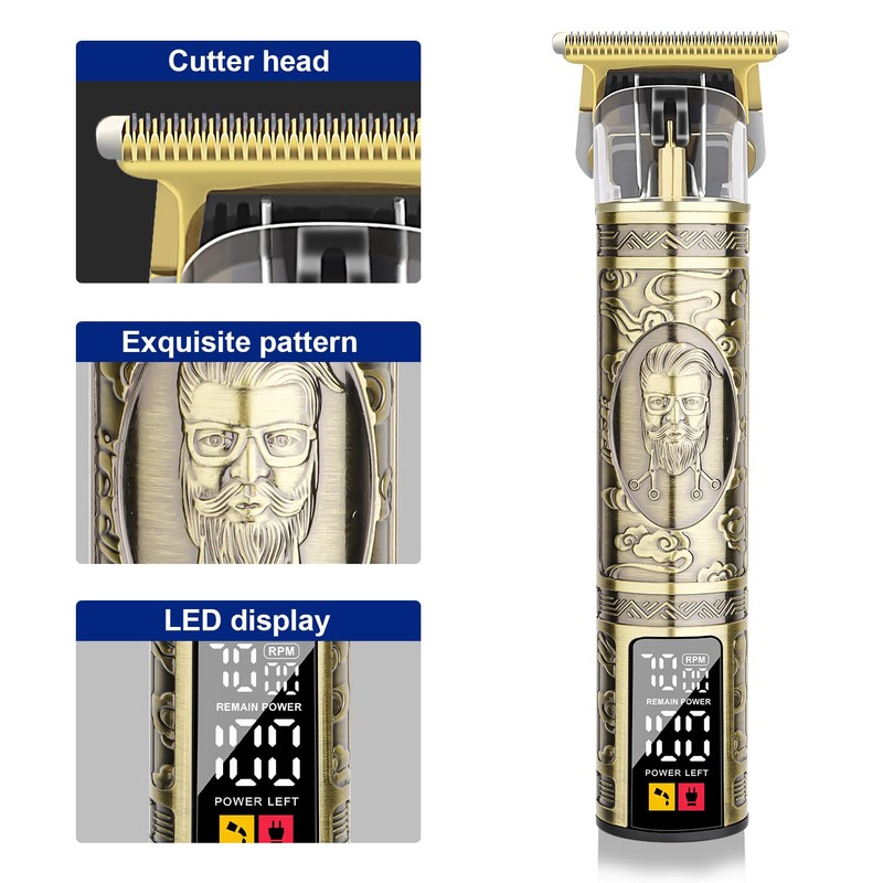 LQT Barber Clippers for Man Cordless T-Blade Trimmer Professional Haircut and Grooming Set Rechargeable Edge Trimmer with LCD Display Gifts for Men (Bronze, Pipes)
