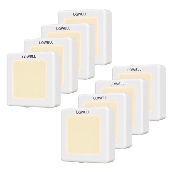 LQWELL® Night Light Socket Foldable with Twilight Sensor, Night Lamp Adjustable Brightness, Automatic Socket Light, Orientation Light Warm White for Children's Room Aisle Stairs (White, Pack of 8)