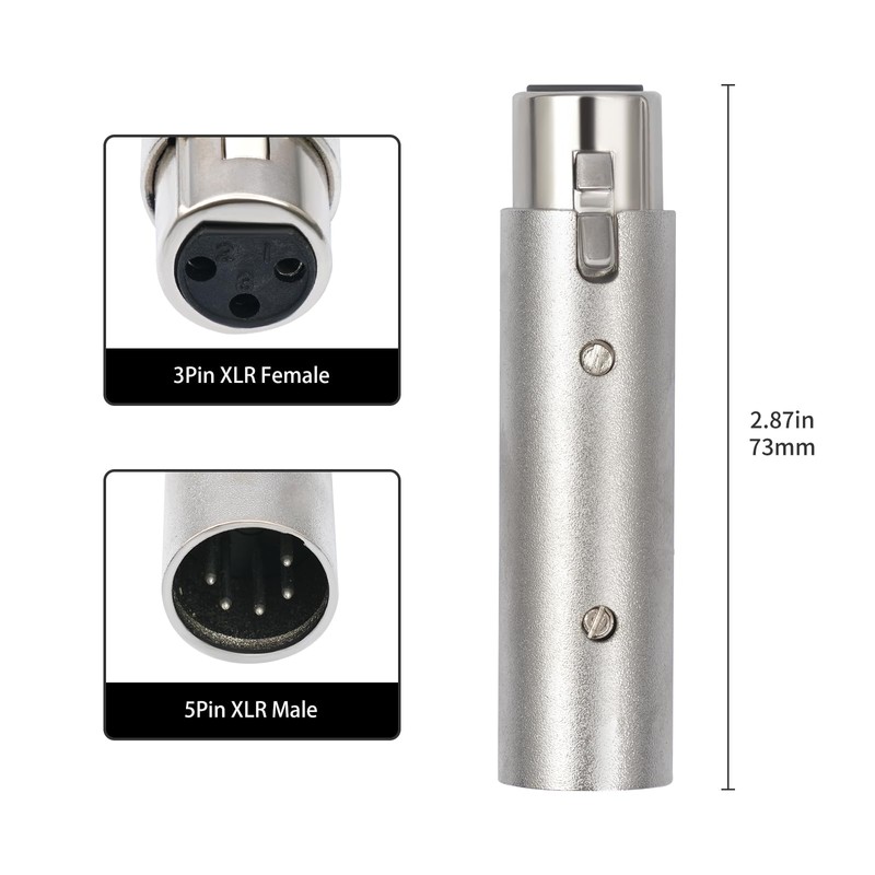Lrbners XLR 3-Pin Female to 5-Pin Male Adapter - DMX/Audio Signal Splitter, D...