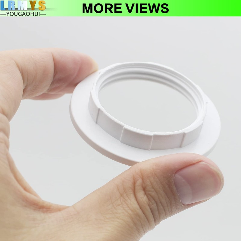 - PRODUCT DETAILS - Material: ABS Plastic; Color: White; Type: E27 Light Shape; Max Heat-resistance: 210 Centigrade; Outer Diameter: 58mm; Inner Diameter: 38 - 40mm; Hight: 11.5mm; Package Includes: 1 Pack; Weight: about 7g.