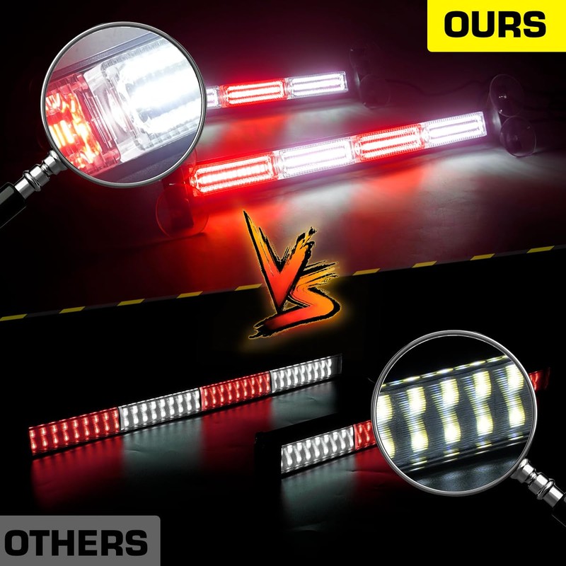 - ☞【SUPER BRIGHT EMERGENCY STROBE LIGHTS】With high intensity LEDs & PS Magnifying Lens, our traffic advisor light bar can enhance visibility of your vehicles, and you can see him from a far away distance in the daytime and very bright at night, provide extra security for your driving.