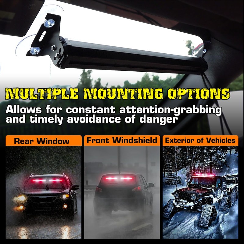 - ☞【STRONG SUCTION CUPS FOR FIRMLY ATTACHED】3-Mins quickly install, firmly attach the 4 suction cups to the front or rear windshield, ensuring that the suction cups are firmly attached to the glass. And then adjust the angle as needed to ensure accurate direction of the light(Attach adhesive tapes for better adhesion)