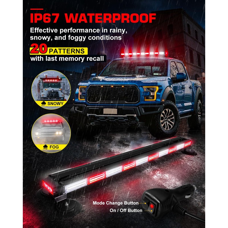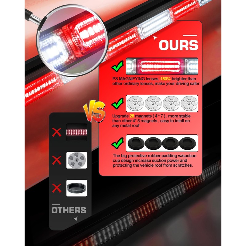 - 🛻【ALERTING DANGER, ENSURING SAFETY】Our emergency light bar serves as a warning.It helps people feel safer to be easily seen during harsh weather conditions/day/night and helps prevent accidents. Great for safety in an emergency!