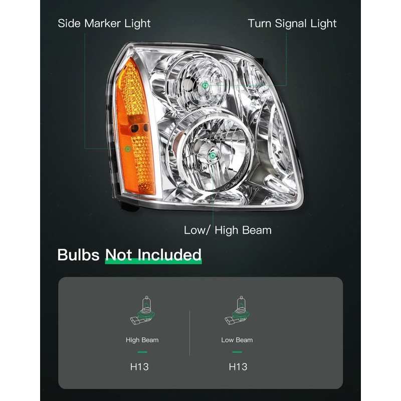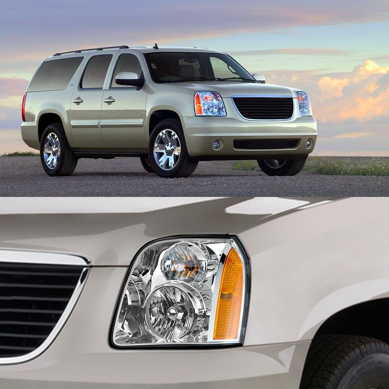 - Compatible With -Chrome Housing Amber Reflector Clear Lens Headlights fit For GMC Yukon 4-Door 2007 2008 2009 2010 2011 2012 2013 2014 ,For GMC Yukon XL 1500 4-Door 2007 2008 2009 2010 2011 2012 2013 2014 ,For GMC Yukon XL 2500 4-Door 2007 2008 2009 2010 2011 2012 2013 OEM:15861025 15861026 GM2502265 GM2503265