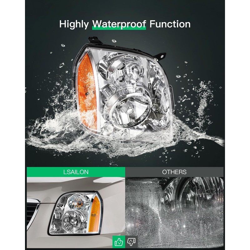 LSAILON Headlight Assembly Fit For GMC Yukon 2007-2014 For GMC Yukon XL 1500 2007-2014 For GMC Yukon XL 2500 2007-2013 Chrome Housing Amber Reflector Clear Len Driver and Passenger Side 15861025