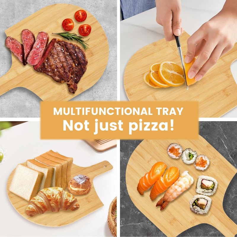 - Pizza Board: Our bamboo wood pizza board effortlessly helps you get your pizza in and out of the oven, from slicing and serving pizza to displaying, this versatile board can handle it all