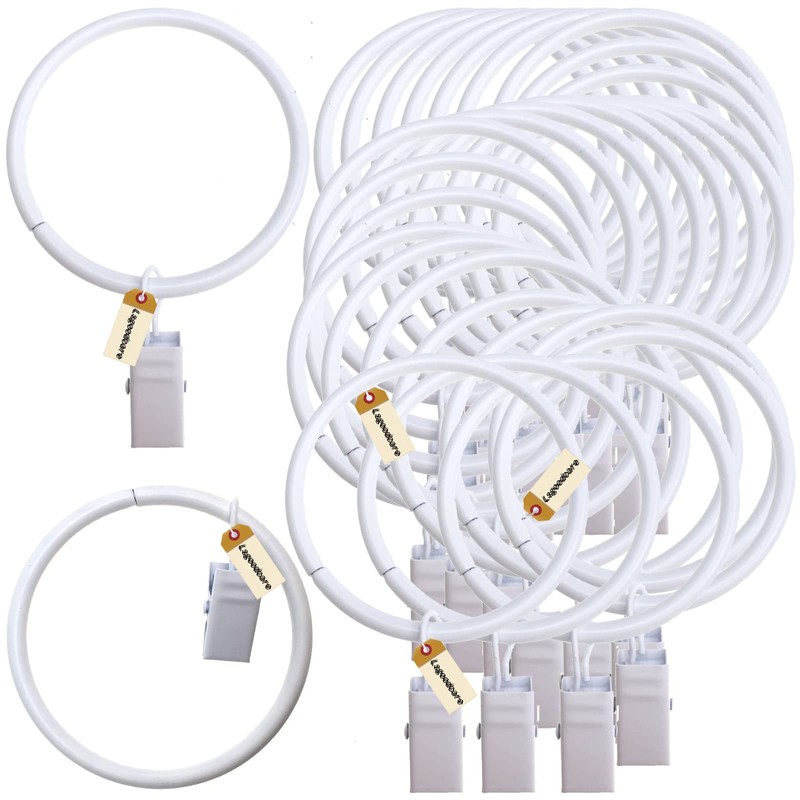 - [Decorative Openable Curtain Rings with Clips White]: Curtain ring inner diameter 2inch; outer diameter 2.32inch, each curtain ring with small teeth can hold up to 3 pounds. fit your curtain rod up to 1 3/4inch diameter