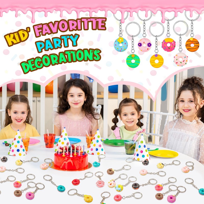 - DONUT THEME PARTY GOODS: These sweet donut keychain shapes are the favorite food and play keychains for many young boys, girls and kids, also used to decorate the donut themed birthday party, add joyful atmosphere to your party and bring wonderful visual enjoyment for your guests