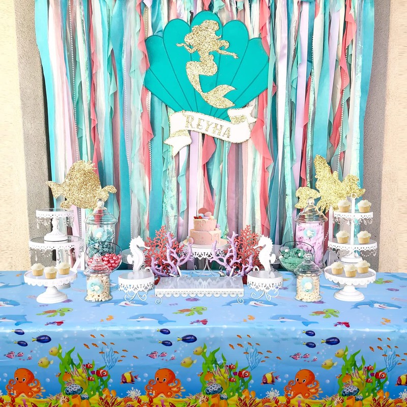 - 🌵Under The Sea Tablecloths: You will get 4 pieces of ocean tablecovers /tablecloths, each of them measuring approx 86inch * 51inch / 220cm * 130cm, which is large enough for most tables, and the sufficient quantity can meet your decoration needs easily for your ocean-themed party