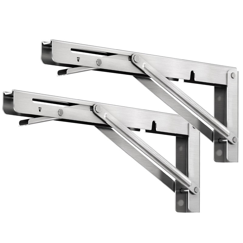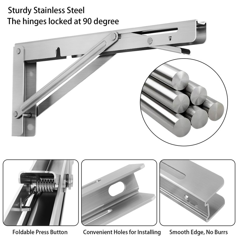 • ✔Ideal Space-Saving Design: The stainless steel foldable shelf bracket can be use anywhere. Provide more extra space for your kitchen, bathroom, garage, workshop, RV, backyard, trailer, etc. Perfect for your various DIY projects.