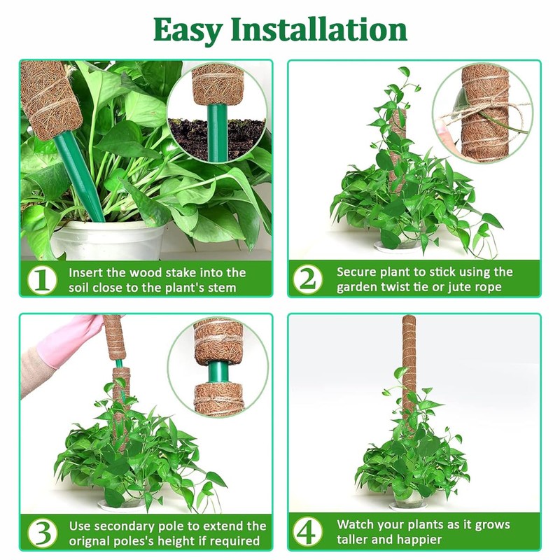 The moss pole is made of natural coir fiber, it can help plants retain moisture and nutrition.