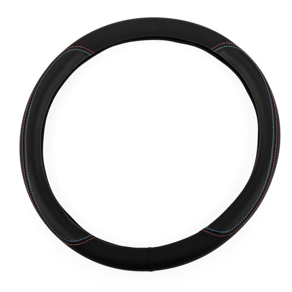 LST Abdeckung Lenkrachoner Lenkradbezug Ø 38cm 15 Zoll schwarz rote blaue Naht