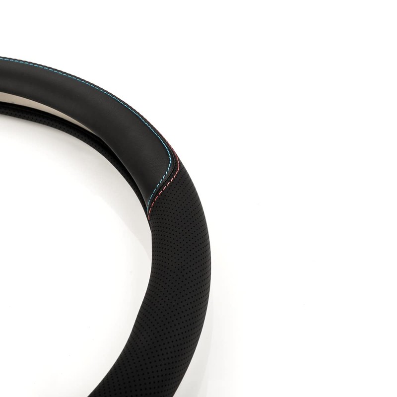 Stichwörter: Lenkrachoner Lenkrad Schoner Bezug Lenkradbezug Hülle Abdeckung Schwarz rote blaue Naht