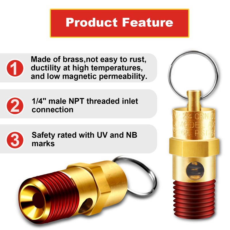- Package Includes: 2 pieces 1/4 inch NPT threaded pressure relief valve with seal thread locks, for your daily use and replacement