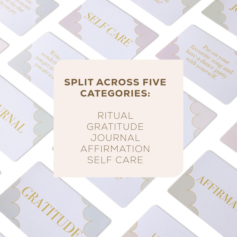 - Simple to Use - Just select a card at random each day and embrace the activity. Categories include Ritual, Gratitude, Journal, and Self-Care and Affirmation effortlessly integrating into your day.