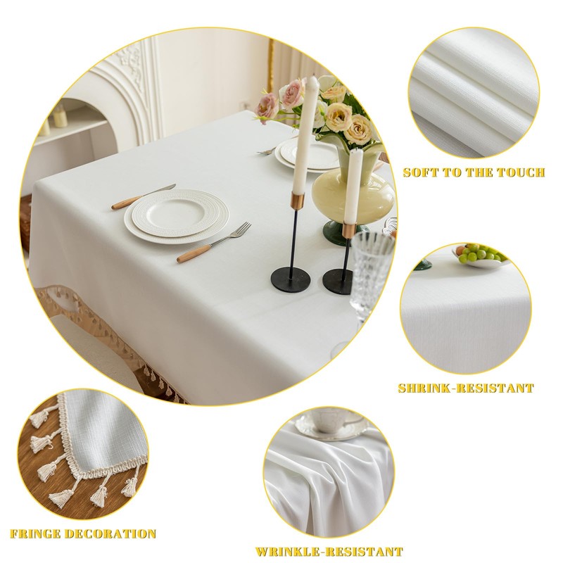 LSYMJ 1 Pack Heavy Duty Cotton Tablecloth Soft Wrinkle Resistant Fabric with Decorative Tassles Fringe for Kitchen Dining Table, Natural White, 55x102 Inch