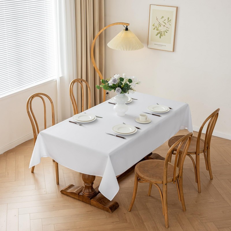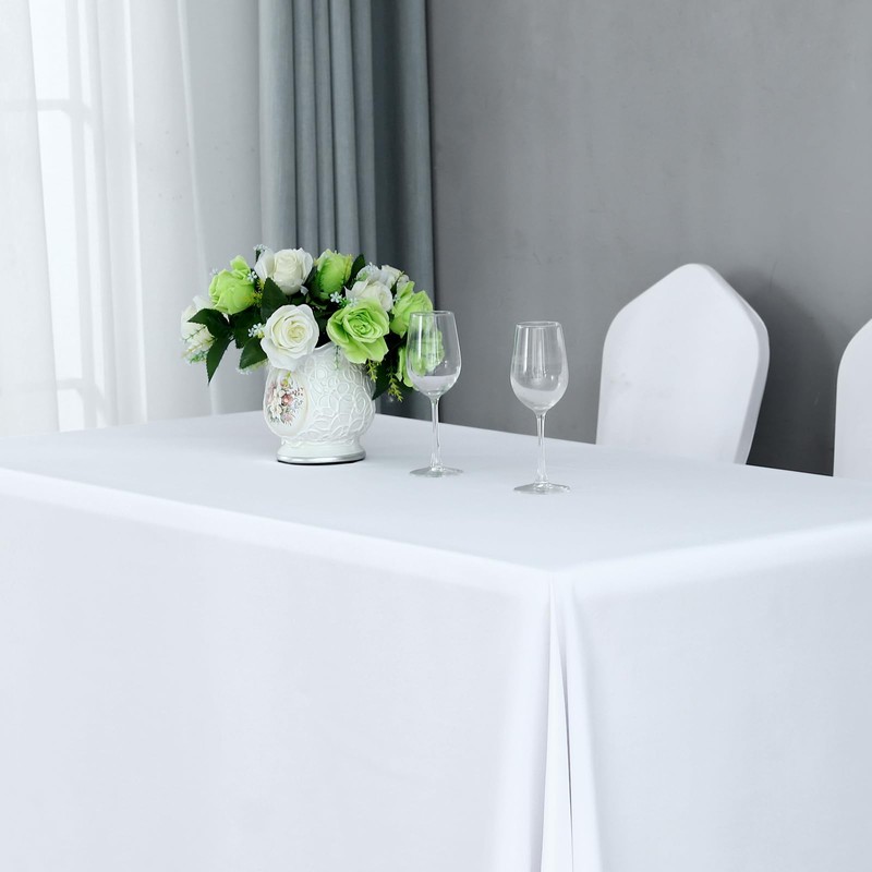 LSYMJ Rectangle Stain and Wrinkle Resistant Washable Polyester Table Cloth, Decorative Fabric Table Cover for Dining Kitchen Tables, Parties and Camping, 54 x 108 Inch,2 Pack,White