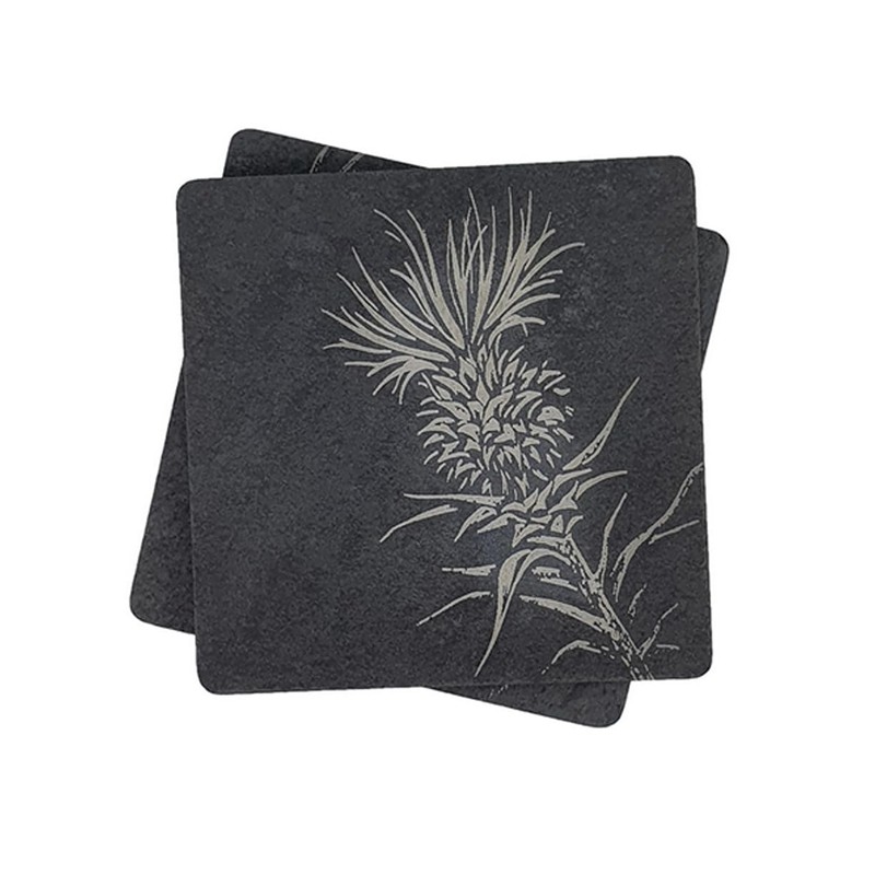 LT Creations Slate Coasters Set of 4 Celtic Design Scottish Table Decorations 3.9'x3.9' (Thistle)