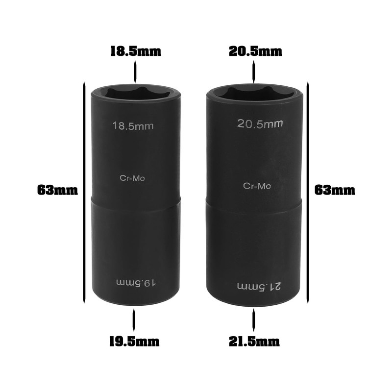 -This bundle includes two versatile sockets: 18.5mm x 19.5mm and 20.5mm x 21.5mm, allowing you to tackle various nut and bolt sizes with ease.