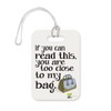 LT212 If You can Read This, You are Too Close to My Bag. Novelty Funny Unique Designer Gift Glossy Plastic Suitcase Luggage Tag