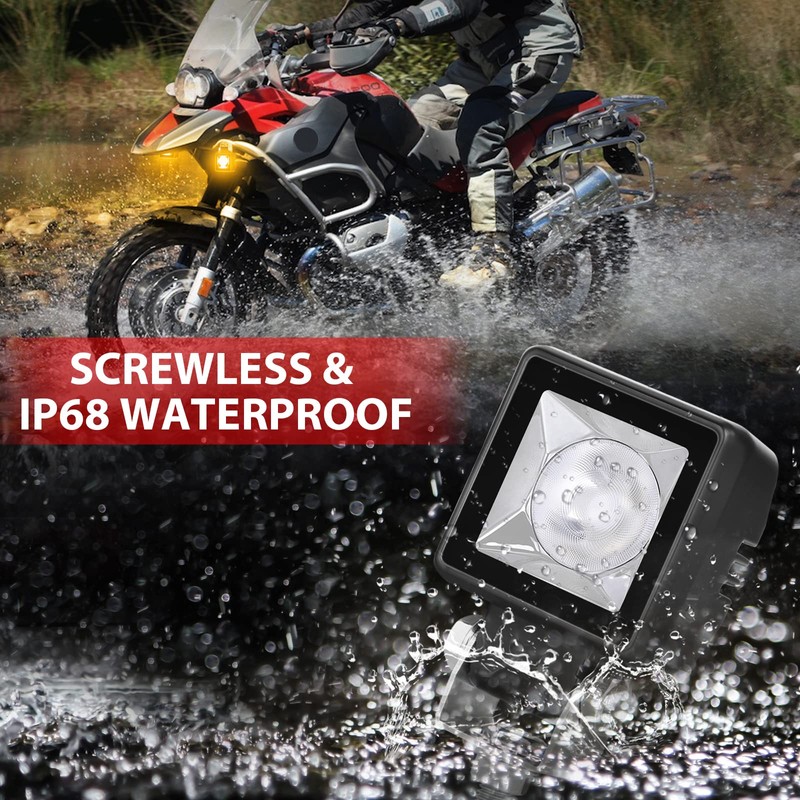 Looking for the smallest and most ferocious night beast? LTEODCHEW mini series is what you're looking for. We sealed 2 10W white beads and 12 amber beads in just 2 inch unibody aluminum housing. So if you don't want to blind oncoming drivers, you'd better to angle them to lower or not use them on street, they're that vicious.