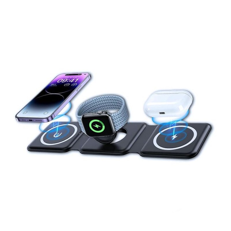 - Just place your smartphone or AirPods on the market and you can charge your Apple Watch at the same time with this Qi standard wireless charger. MagSafe compatible allows you to reduce cables and keep your device clean while the powerful magnet ensures a stable charge without slipping. The wireless charger folds down to easily attach to the back of your iPhone for easy charging during games